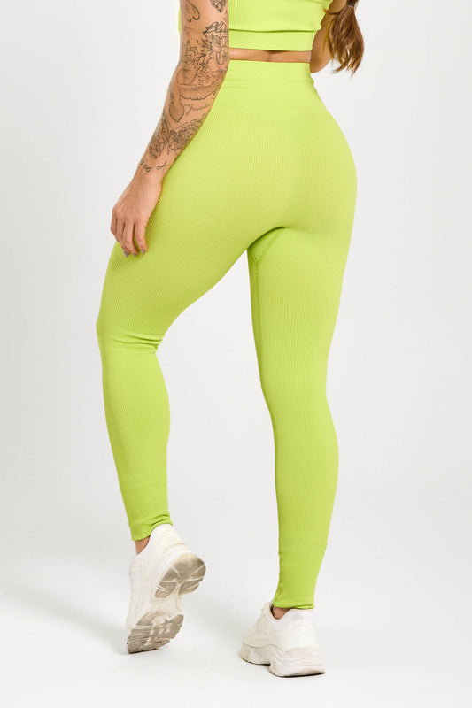 Calça Legging Canelada Cós Alto Seamless Neon