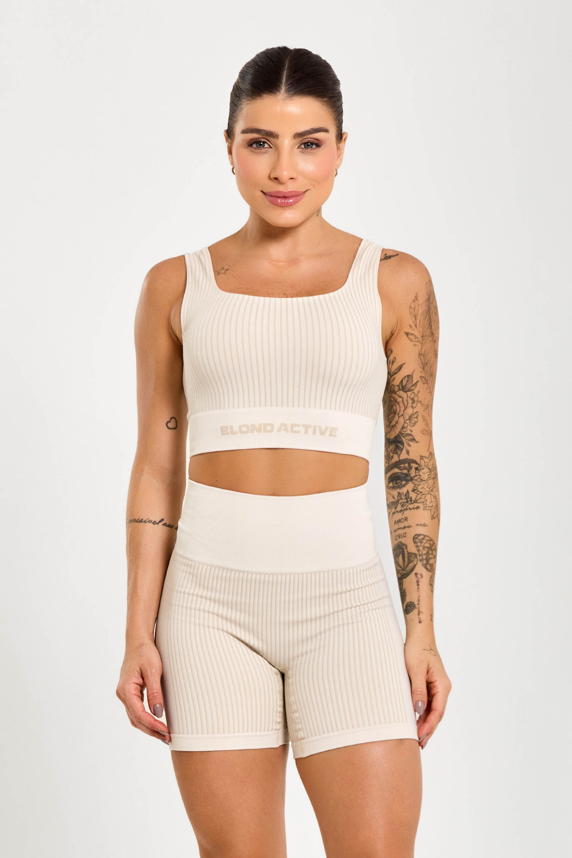O Conjunto Energy Seamless Tex Off White combina performance e conforto em duas peças pensadas para treinos intensos e uso no dia a dia.