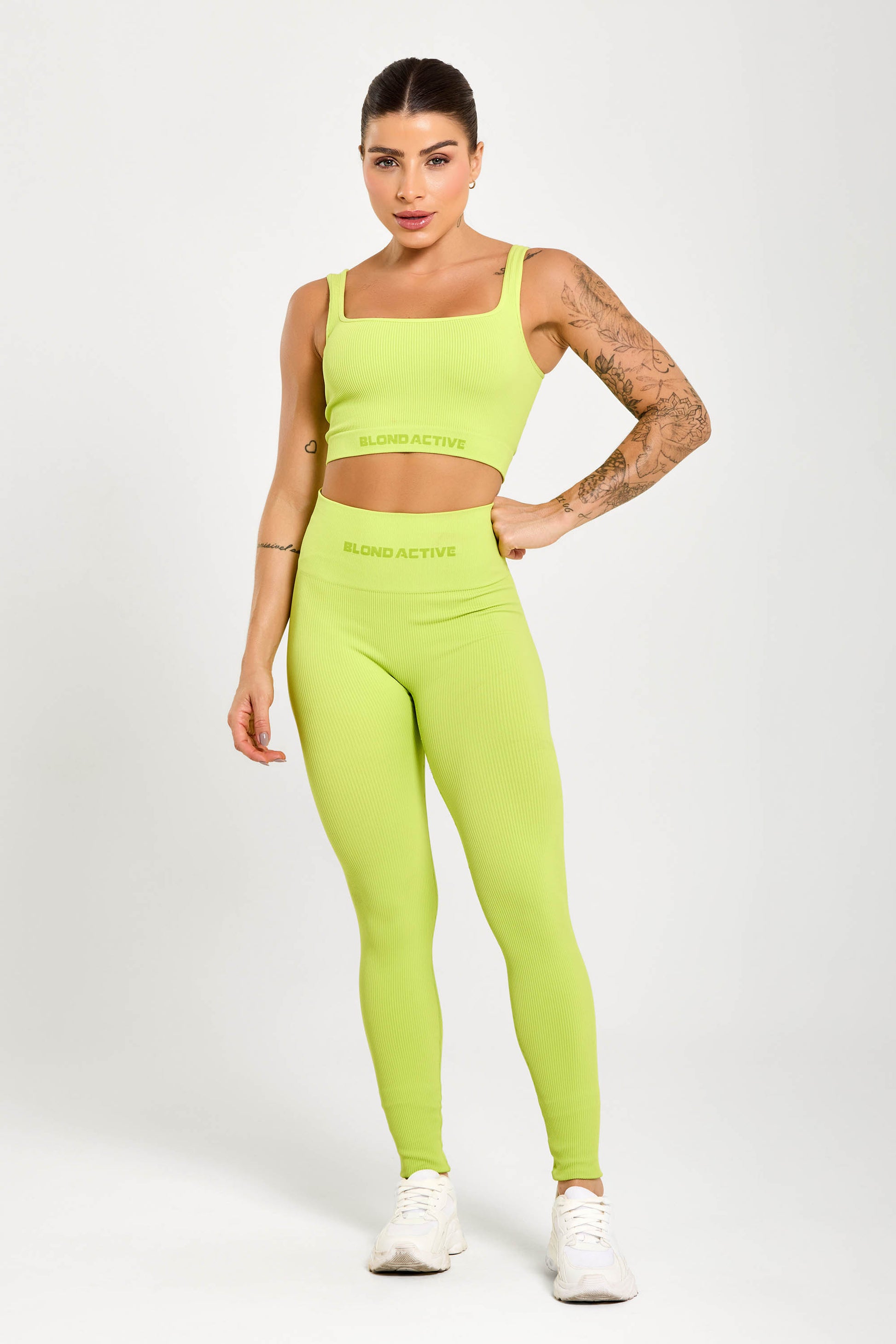 Top de alça canelado Neon seamless com suporte médio, aderência e respirabilidade. Conforto estável para treinos diários.
